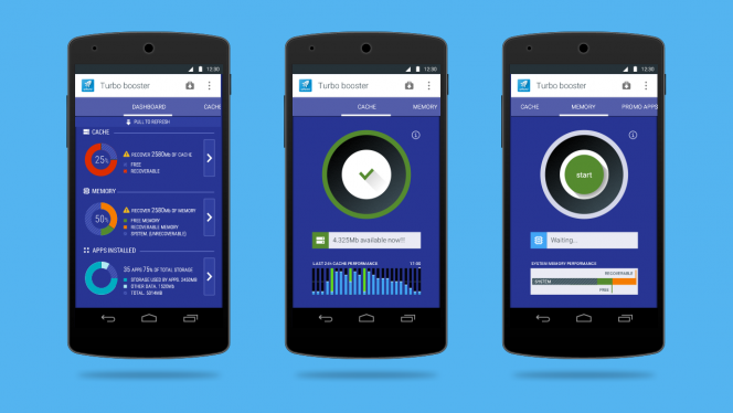 Turbo Booster is a tool that cleans unnecessary files from the memory of your Android device in order to boost its performance. It has three main functions: deleting residual files, cleaning the RAM memory, and helping you get rid of the applications you don’t use anymore. Turbo Booster solves these issues in a fast and simple manner. The difference you’ll see varies according to device, but your Android phone’s performance will definitely be improved.