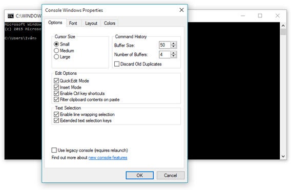 The what? Command Prompt is really only for the fabled advanced users, and moreover, the ones who wish to type their commands in MS-DOS. Windows 10 adds some more options for Command Prompt, including changing the opacity of its window.