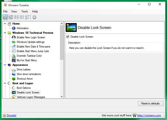 You can disable it with a little app called Winaero Tweaker, which gives you some additional startup options. Install the app, and go to Boot and Login – Disable Lock Screen. You can also do this with AVG TuneUp. With this app, look in Optimization – Modify Windows Settings – Security – Administration – Login. You’ll need to enter your password to deactivate the login screen.