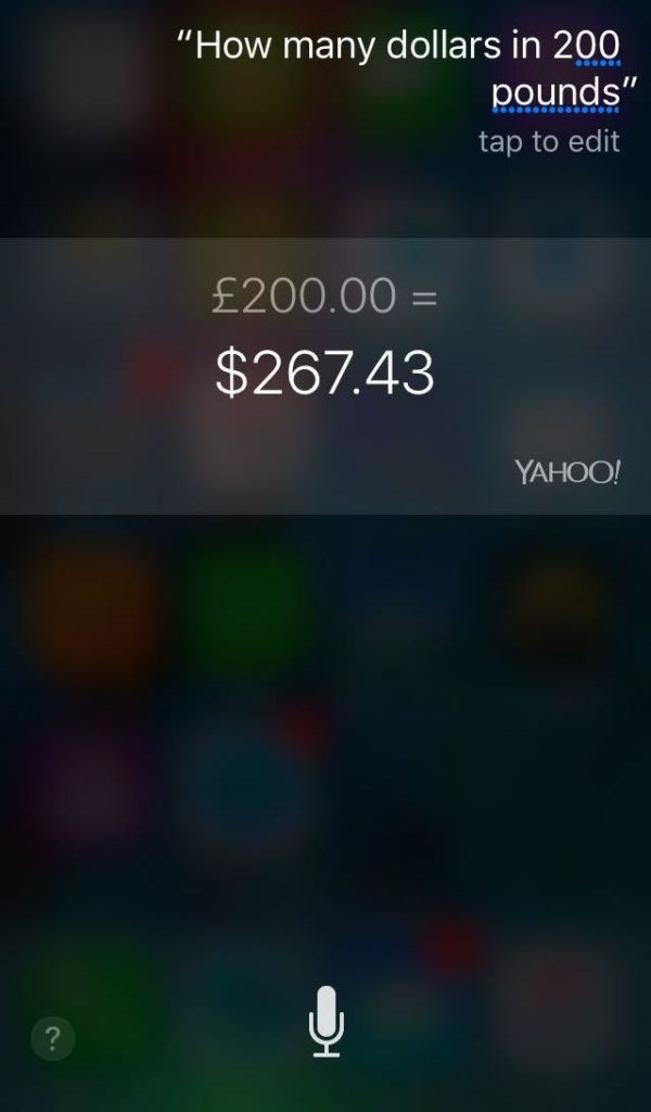 You can not only use Siri as a calculator, but you can also ask it to convert currencies and measurements for you. You no longer have to search the conversion rates and make your calculations manually. All you have to do is ask, “How many dollars in 200 pounds?” and Siri will give you the exact amount within no time. You can also convert temperature, distance, weight, and speed.