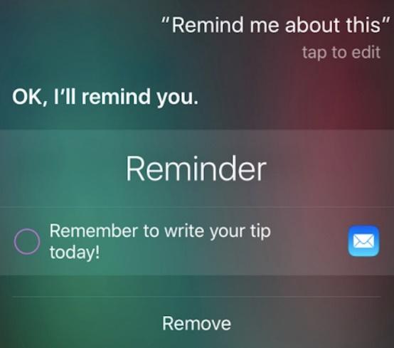 If you are looking at a webpage or an app that’s interesting to you and you would like to look at it later, you can tell Siri to save it for you. All you have to do is say, “Siri, remind me about this.”