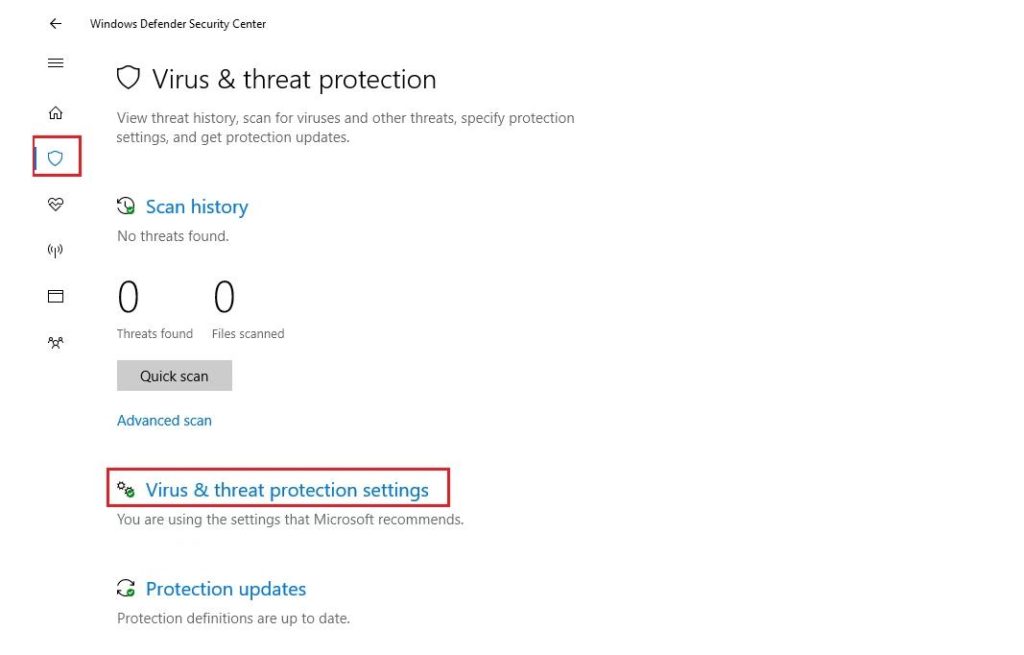 To turn on the feature, start by opening the Windows Defender Security center by clicking the shield icon in the task bar. Next, click the Virus and threat protection icon on the left side menu bar or its tile to the right.