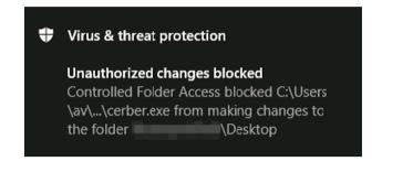 If an unauthorized application tries to access or modify files in the protected folders, this warning is displayed: