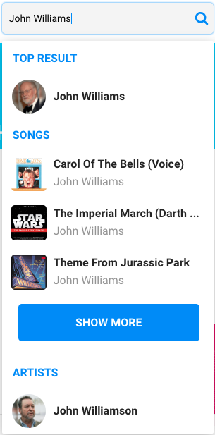 From there, you’re given a list of artists, songs, and composers to choose from. Each will have their own “radio” station where you can find similar songs and other music from the same artist. For example, if you make the right decision and choose bandmaster John Williams…