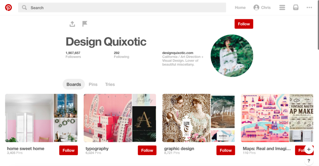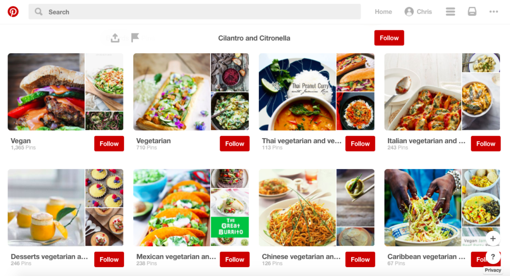 Finally, if you’re not all that keen on following individuals, follow boards instead. Searching for boards is easier, and you get all the inspirational content for your chosen board without worrying about who created it.