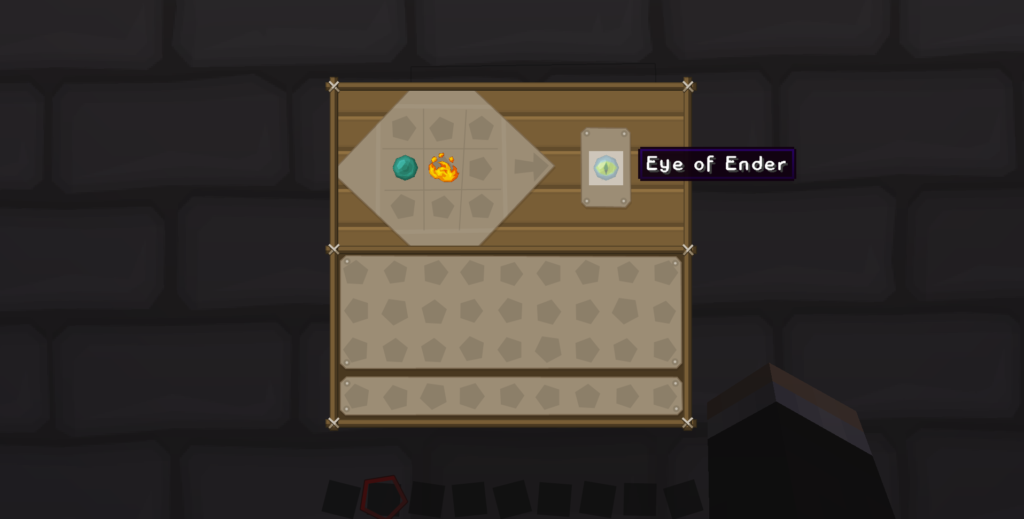 The Eye of Ender is used to locate a Stronghold. When thrown in the air, it travels upwards and then horizontally in the direction of the nearest Stronghold. Then, it will either drop to the floor (80% chance) or break (20% chance). You also need Eyes of Ender to activate the End Portal (12 in total), so make plenty of them before you start your adventure!