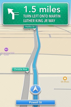 I think the most irritating part of Apple Maps is the actual directions. The billboard sign placed at the top of the screen covered too much of the screen. The perspective of the map also didn’t allow you to see very far ahead. Google Navigation’s perspective displayed from a lower angle so it was possible to see a wide area along with the suggested route.