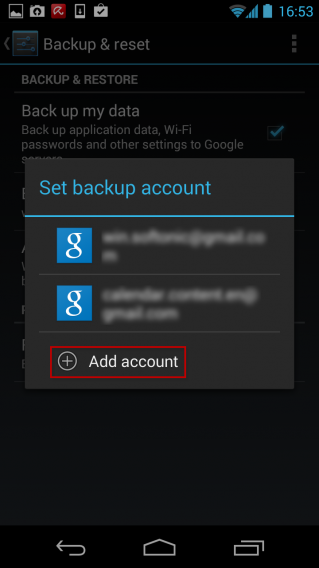 4. Configure the Google account that will be used for backup by clicking Backup account.
