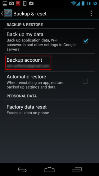 Android allows you to automatically back up some settings and data associated with a Google Account such as Wi-Fi passwords, browser bookmarks, applications installed from Google Play, terms added to your personal dictionary, as well as most device settings and applications using the backup service.