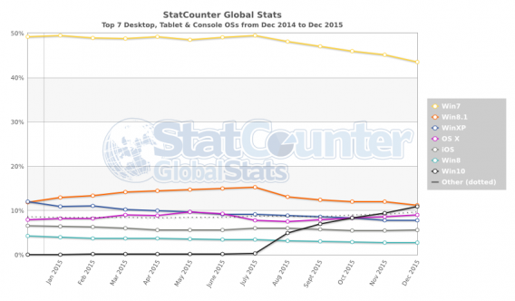 Looking at a chart from StatCounter, Windows 8 represents less than 3% of global operating systems worldwide. Note also that the steady growth of Windows 10 means it is already surpassing Windows 8, while Windows 7 is declining at the same rate – yeah, Microsoft ending its support for 8 is making a lot more sense suddenly.