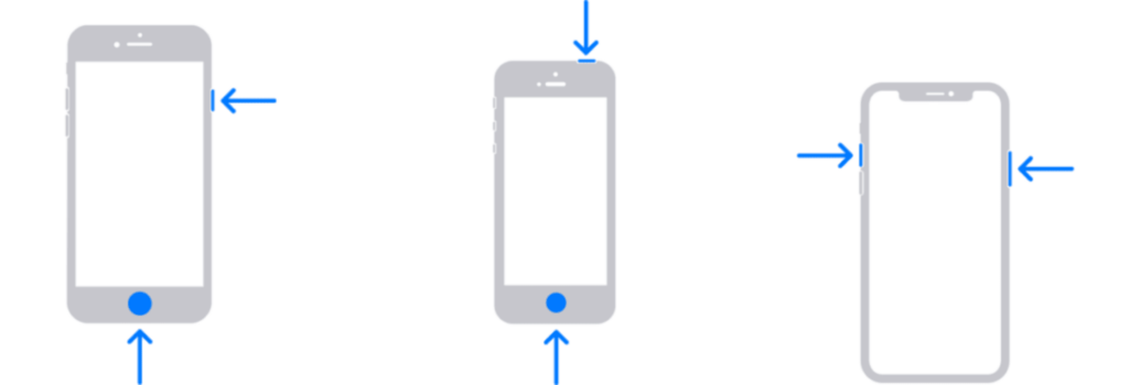 The key, here, is to know which buttons to press depending on which iPhone or iPad we have in front of us: