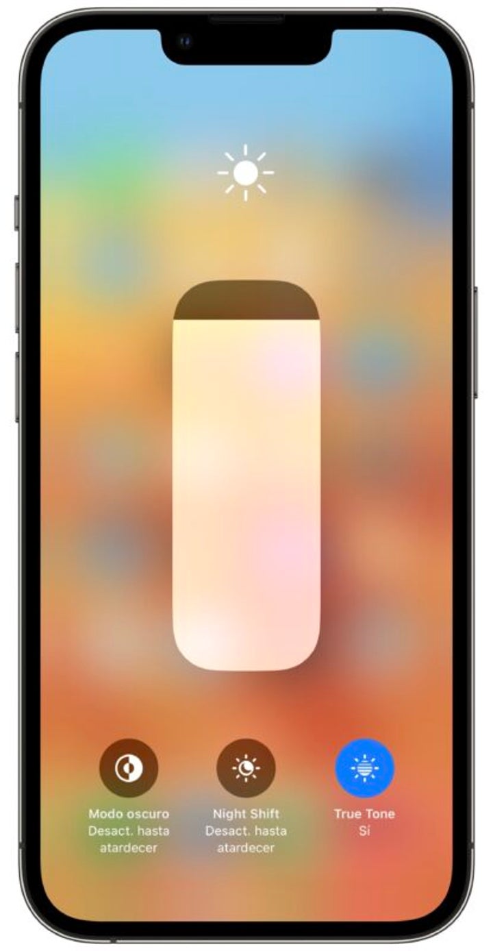 Alternatively, we can enable or disable dark mode directly from the Control Center brightness setting. Once we have swiped down to see it, all we have to do is press and hold the brightness slider. We will see a series of buttons appear below it. Tap the dark mode button to turn it on or off.