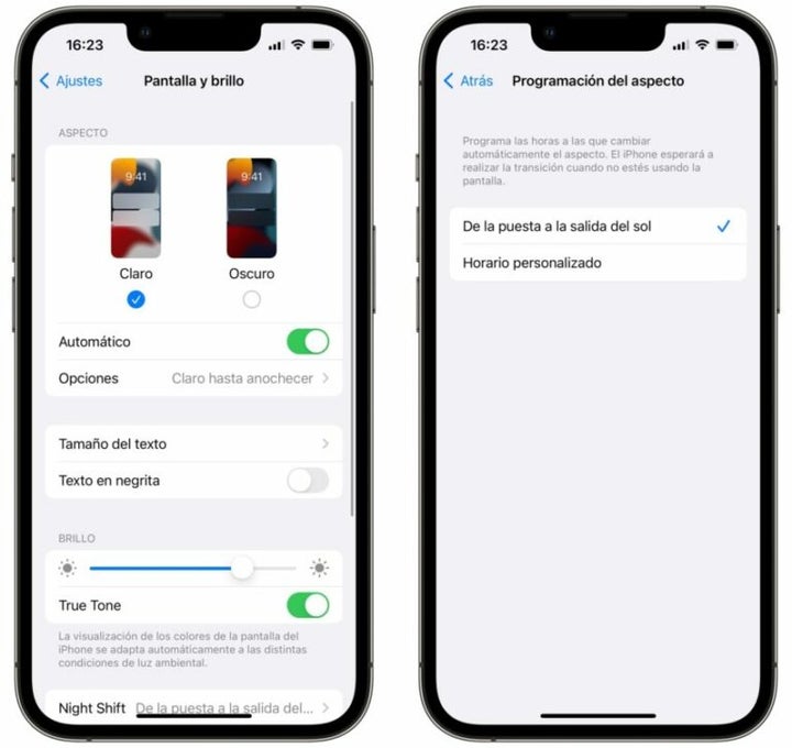 We can configure our iPhone so that the dark mode is automatically activated at certain times of the day. The system offers us to automatically adjust to sunrise and sunset, but we can also define a specific schedule that is comfortable for us. In any case, the steps to follow are as follows: