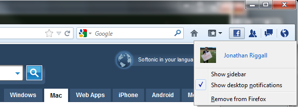 In line with recent updates, this is not a radical update, but there are some changes. The most notable is the introduction of Facebook integration. Click here to enable this feature once Firefox has been updated. This adds four Facebook buttons to Firefox, as you can see below, allowing you to check notifications, messages, friend requests, and open your profile.