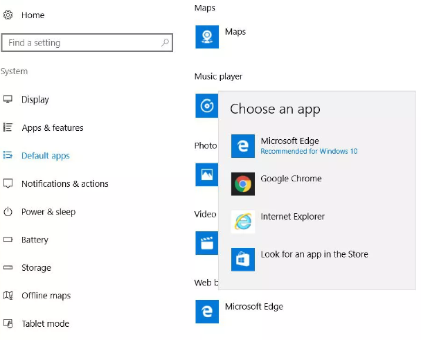If you want to use Firefox, Chrome, or any browser other than Microsoft’s Edge, you can install it yourself and make it your default browser. After installing Chrome (as discussed in section 2), the first time you launch it, it will ask if you want to set it as the default browser. If you miss it, you can go to Settings -> System -> Default apps, and click Microsoft Edge in the “Web browser” section to make a different selection.