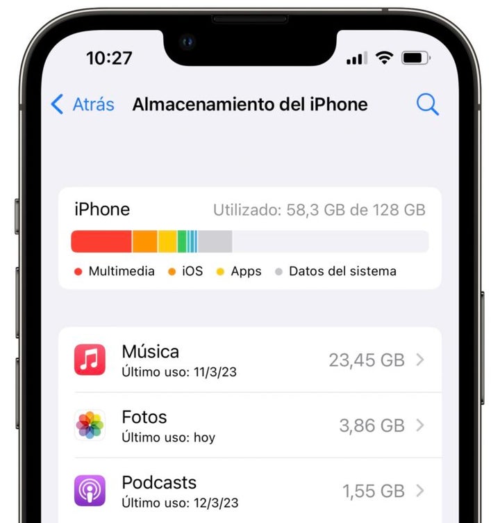 First of all, let’s talk about how much space we have available. This is something we can check by opening the Settings app and going to General > [iPhone/iPad] Storage. At the top, we will see a graph that, by color, will show us what is occupying more inside our iPhone or iPad.