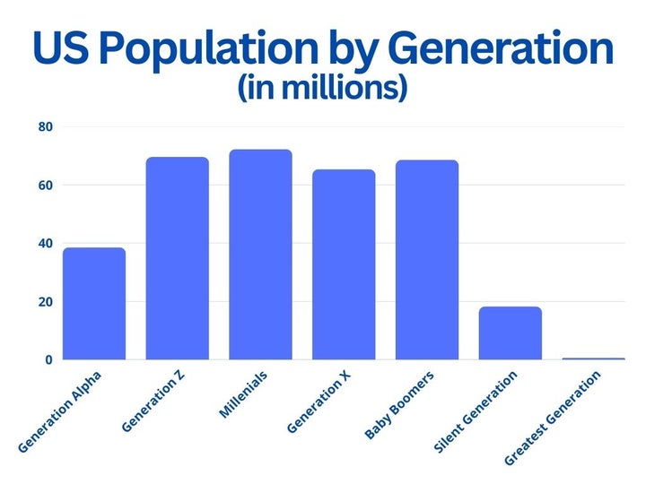 According to Statista, Gen Alpha comprises over 13% of the US population, with 38.55 million individuals belonging to it. While the number of Gen Alphas in the US is currently higher than those belonging to the Silent Generation or Greatest Generation, it is approximately half of the Millennial Generation.