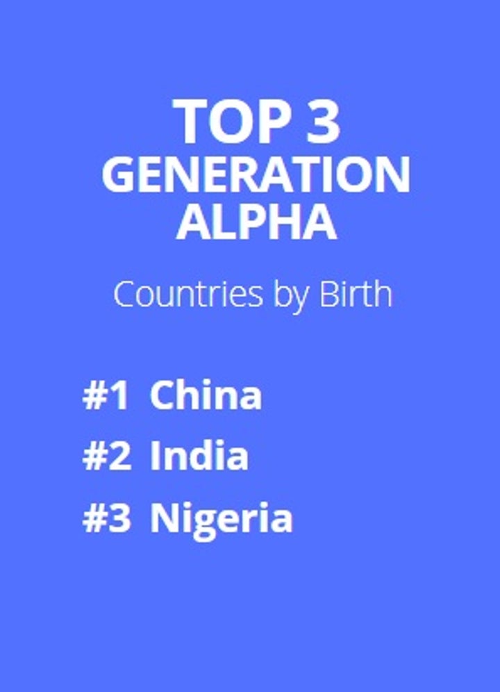 Currently, there’s more than 2 billion Gen Alphas living in the world, with China, India and Nigeria leading the top 3 countries by number of births. And these numbers are still temporary. According to a recent study made by McCrindle, more than 2.8 million Generation Alphas are born globally every week. This makes Gen Alpha the largest generation in the history of the world.