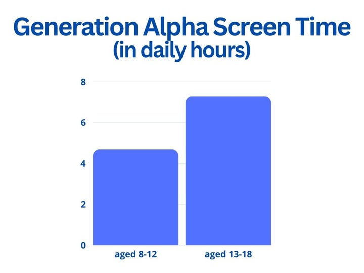 According to McCrindle’s Understanding Generation Alpha, those aged 8-12 consume an average of 4 hours and 44 minutes of screen per day just for entertainment purposes. This number increases to 7 hours and 22 minutes for those aged 13-18.