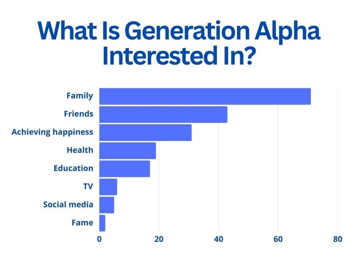 The same survey also found out that one of the most important things for Gen Alphas is family (71%), closely followed by friends (43%) and achieving happiness (31%). On the opposite end of their scale of values we find health, with only 19% of them stating that it’s important and education, with a low 17%. Closing the list of things they believe that are important we find TV (6%), social media (5%) and fame (2%).