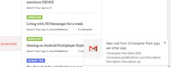 Notifications are so far only available on Windows and Chrome OS. These are a way for notifications to appear outside the browser window. Chrome apps and extensions can use these rich notifications, with formatted text and images to provide extra functions without users having to leave the page they are viewing. The notifications can include actions, like responding to an email or taking a web-cam photo. Support for Mac is coming soon.
