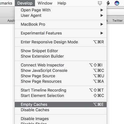 In the menu, click on ‘Develop’ and then on ‘Empty cache.’