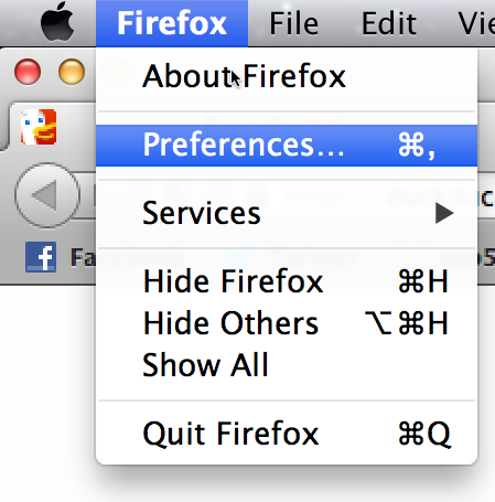 In the top left-hand corner of Firefox for Mac, select Preferences