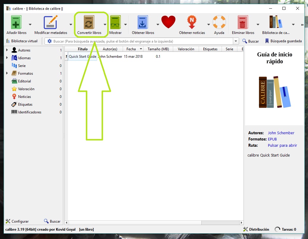Calibre is a kind of virtual library where you can bring together all the eBooks you own. No matter what extension or format, Calibre detects the info saved in the metadata and adds it to its database, so you can keep your collection organized by name, author, genre and a long list of other options. Also (this is important for this article), it has a file converter.