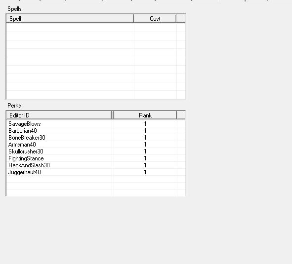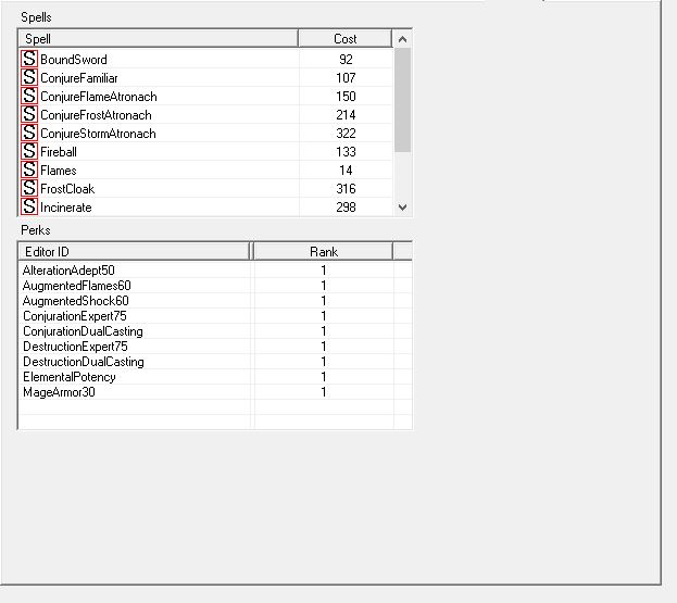 Here’s where you pick your follower’s perks and, if they use magic, their spells. We made our example follower a mage just so you can see what it will look like. If you use magic, right-click in the “Spells” window and pick out any spells you want this follower to use.