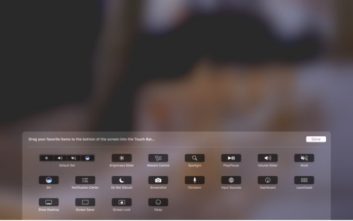 If you want to remove a tool from the Control Strip on your MacBook Pro, you can move the cursor into the Touch Bar and select a tool to remove it from the Control Strip. Simply click on a tool on the Controls Strip and drag it to a new location on the Touch bar to rearrange the order. Finally, once you’re finished with customizing your Control Strip, click Done and your changes will be saved.