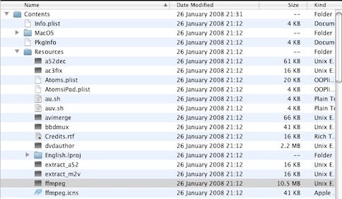 3. Find the ffmpegX file by drilling down the “Contents” and “Resources” folders: