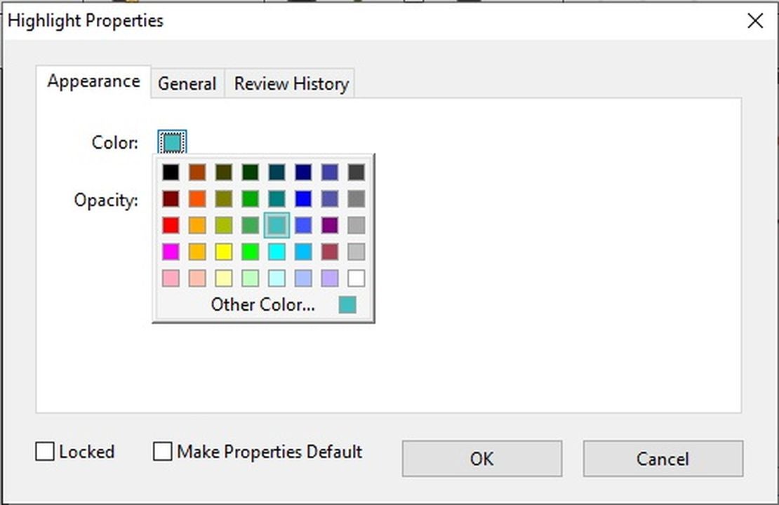 – In the Appearance tab of the Highlight Properties window that pops up, click on the box marked Color.