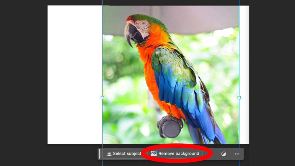 - First, place your image and click on Remove Background, an option you’ll find in the small contextual bar that appears under the canvas.