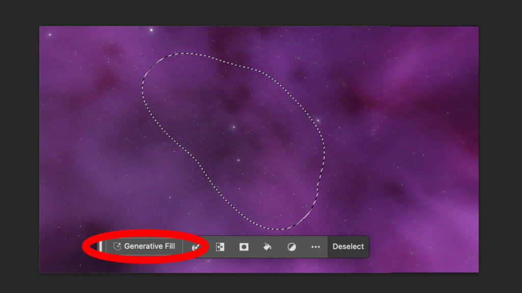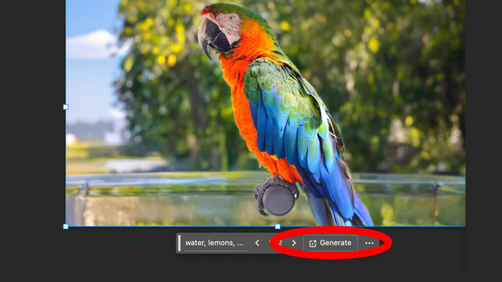 - When the small contextual menu appears under the selection, click on Generative Fill.