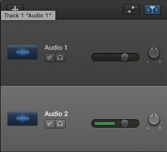 The volume adjustment button can be found over the tracks tab. Using this button shows the volume settings for each track: