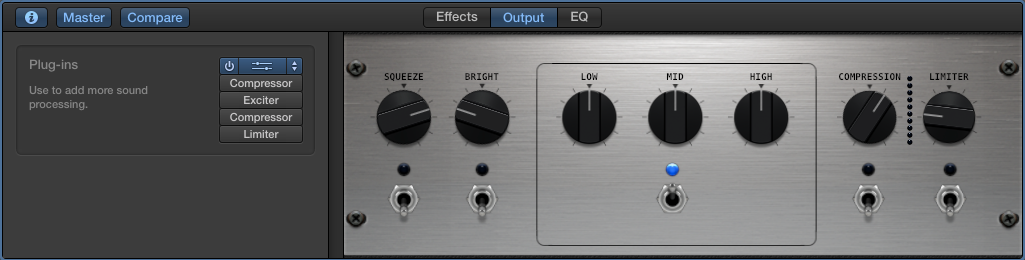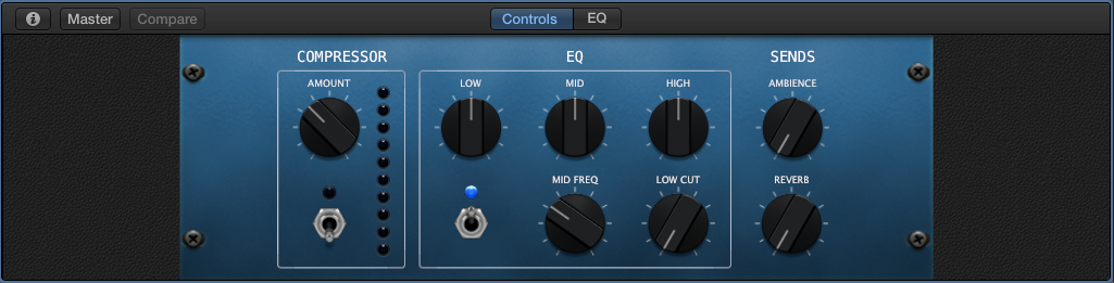As you can see, Apple designed the knobs to look like those of a real amp. Adjust levels for low, mid, and high frequencies, increase reverb, and more! Both the “Info” and “Compare” buttons provide more options.