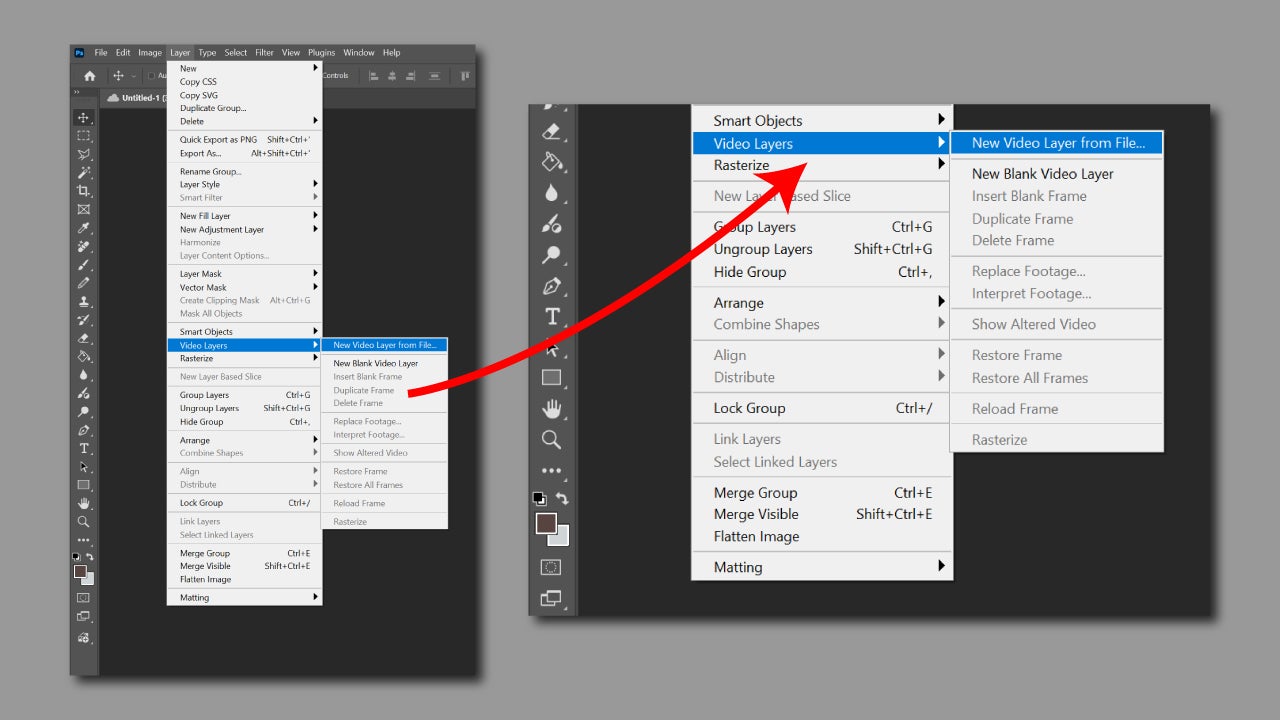 - In a new file, select Layer > Video Layers > New Video Layer from File.