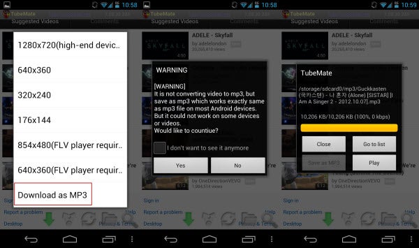 Saving your videos is easy with TubeMate YouTube Downloader. The different number of video quality options is great so you can have a lot of high quality videos. Audio sounds more like streaming previews, but is passable when you want to sample an audio clip.