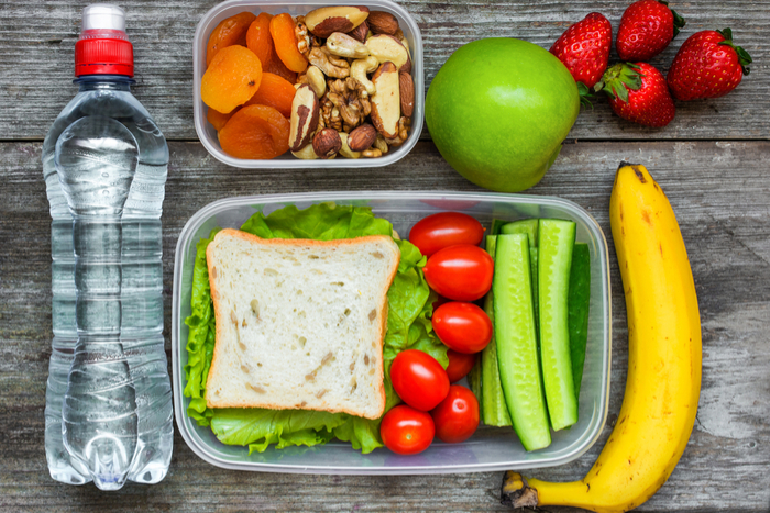 If you have time, make sure you stock up on healthy snacks and easy meal ingredients ahead of the work week. So, stock up on yogurts (no-sugar-added!), almonds, protein bars, and smoothie ingredients.