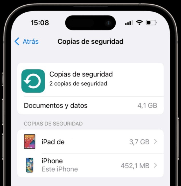 Here we will see a list of all the backups stored in iCloud. If there are several copies of the same device, we must make sure to keep the one with the subtitle “This iPad” or “This iPhone”, which indicates that it belongs to the current device. For the other copies, all we have to do is delete them.
