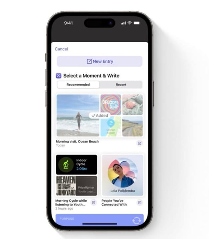 What sets it apart is its focus on personal reflection and its ability to suggest moments to document through machine learning. By analyzing elements such as photos, music, workouts, and more, the app offers starting points for writing, making Journal a proactive diary. It also ensures privacy, ensuring that only the user can access their content.