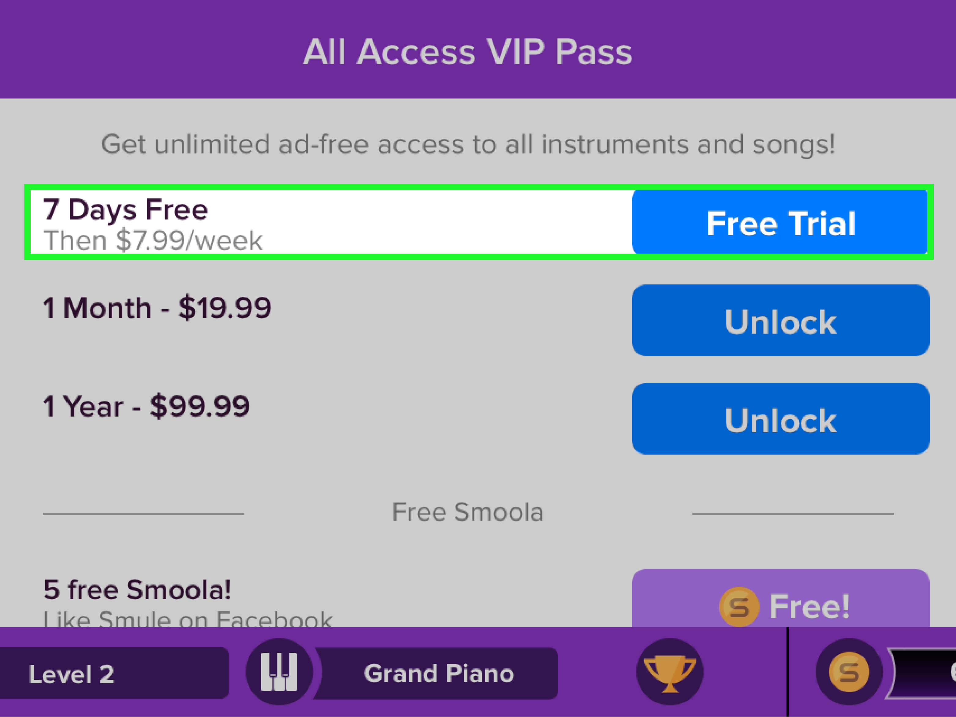 Anyone who pays for Smule is considered a VIP member. Being VIP gets you a few key features to which you won’t otherwise have access. A VIP membership gets you:
