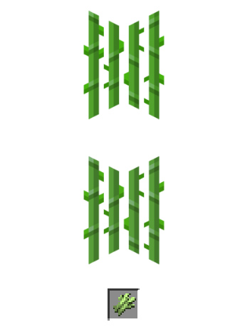 Sugar Cane grows naturally near water, and you can start a sugar cane farm with a single sugar cane block. It looks like green reeds and, when grown, can be used to make sugar, which can go into other food items, but also paper and other crafting items.