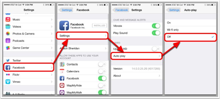 Go to your phone’s Settings > Facebook > Settings > Auto-play and select the option you prefer.
