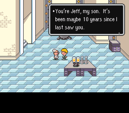 Ness’ friend Jeff is the party’s tech whiz who relies on gadgets and his own intuition instead of psychic powers. You encounter Jeff’s father, Dr. Andonauts, multiple times throughout the game. Like Jeff, Dr. Andonauts is a supergenius inventor. He is cold and distant toward Jeff, however, only visiting him once every few years. They’re so distant that Jeff refers to his father as “Dr. Andonauts” rather than “Dad.”