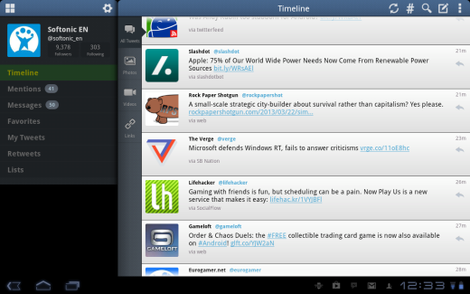 FriendCaster is arguably a better Facebook client than the official app, and the tablet version is very smart. Not only does it look more elegant, but it’s faster too and delivers instant real time notifications. All of your favorite Facebook features are included (status, photos, messaging, events, etc.) The news feed is clearly laid out, with the ability to filter what you see based on friends lists. You can customize the design of FriendCaster with a choice of five themes. Price: Free