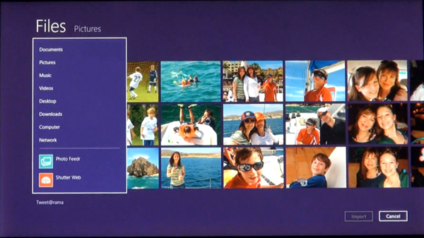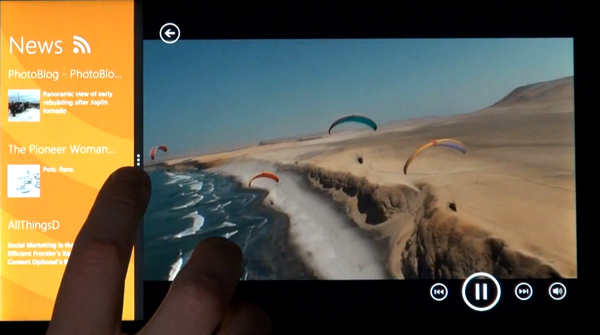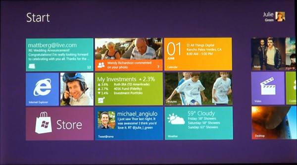 What we see in this Windows 8 video is basically the system interface, very much inspired by the latest version of Windows Mobile. Everything is organized in tiles on a colorful, minimalist Start screen. Oddly enough, Windows 8 seems to be based entirely on touchscreen technology – the demo is controlled with finger gestures throughout the whole video – so I wonder how keyboard and mouse will interact with it. The Start screen includes tiles for each app, and also for the Windows Store. Social networks and email are also quite relevant in the new Windows 8 and are directly built-in in the Start screen.